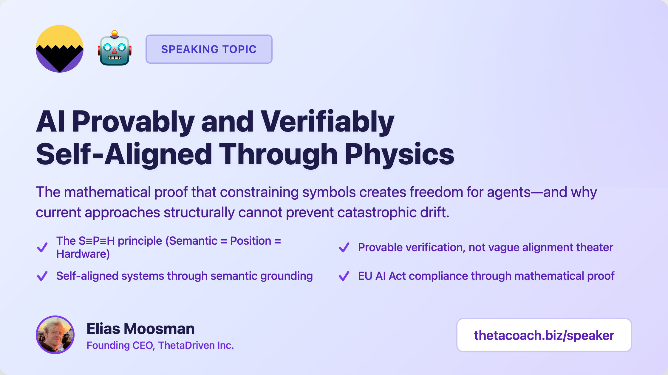 25 years proving the same counterintuitive pattern: when symbols drift from meaning, they serve whoever controls definitions. The mathematical proof for AI alignment through provable verification, not vague promises.